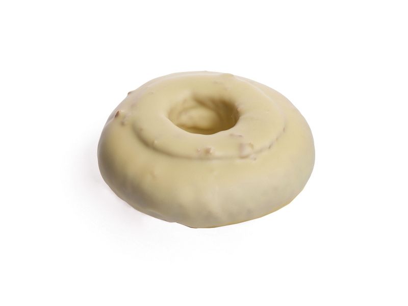 Mit weißer Kuvertüre überzogen ist er eine beliebte Gaumenfreude.