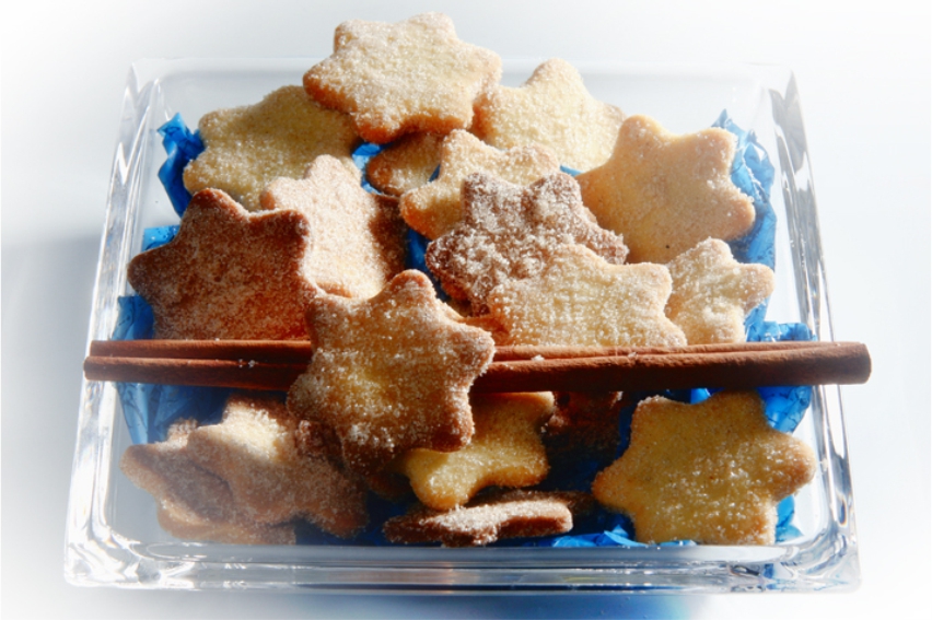 Die liebevoll ausgestochenen Sterne aus feinstem Butter-Mürbeteig werden nach dem Backen in einer Zimt-Zuckermischung gewälzt und erhalten damit ihren vollmundigen Geschmack.