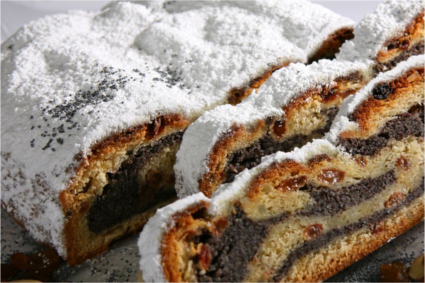 Weizenmehl, Mohn, Rosinen, Butter, Vollmilch, Butterschmalz, Zucker,